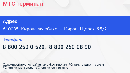 МТС, терминал по адресу 610035, Кировская область, Киров, Щорса, 95/2 в дальнейшем Организация, размещена в следующих категориях: