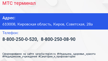 МТС, терминал по адресу 610008, Кировская область, Киров, Советская, 28а в дальнейшем Организация, размещена в следующих категориях: