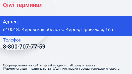 Qiwi, терминал по адресу 610018, Кировская область, Киров, Проезжая, 16а в дальнейшем Организация, размещена в следующих категориях: