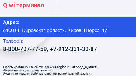 Qiwi, терминал по адресу 610014, Кировская область, Киров, Щорса, 17 в дальнейшем Организация, размещена в следующих категориях: