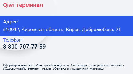 Qiwi, терминал по адресу 610042, Кировская область, Киров, Добролюбова, 21 в дальнейшем Организация, размещена в следующих категориях: