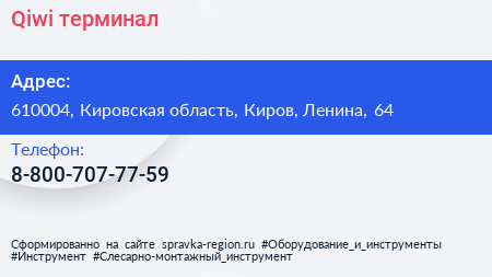 Qiwi, терминал по адресу 610004, Кировская область, Киров, Ленина, 64 в дальнейшем Организация, размещена в следующих категориях: