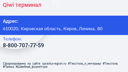 Qiwi, терминал по адресу 610020, Кировская область, Киров, Ленина, 80 в дальнейшем Организация, размещена в следующих категориях: