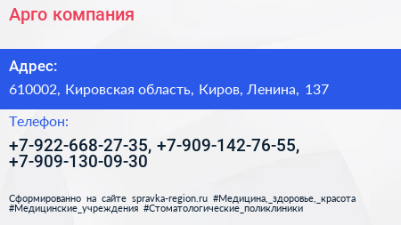 Арго, компания по адресу 610002, Кировская область, Киров, Ленина, 137 в дальнейшем Организация, размещена в следующих категориях: