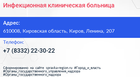 Инфекционная клиническая больница по адресу 610008, Кировская область, Киров, Ленина, 207 в дальнейшем Организация, размещена в следующих категориях: