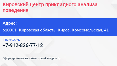 Кировский центр прикладного анализа поведения по адресу 610001, Кировская область, Киров, Комсомольская, 41 в дальнейшем Организация, размещена в следующих категориях: