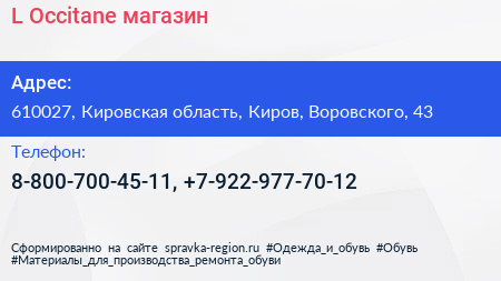 L`Occitane, магазин по адресу 610027, Кировская область, Киров, Воровского, 43 в дальнейшем Организация, размещена в следующих категориях: