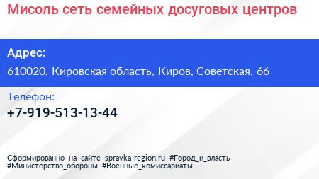 Мисоль, сеть семейных досуговых центров по адресу 610020, Кировская область, Киров, Советская, 66 в дальнейшем Организация, размещена в следующих категориях: