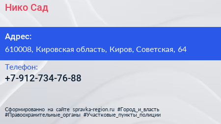Нико Сад по адресу 610008, Кировская область, Киров, Советская, 64 в дальнейшем Организация, размещена в следующих категориях:
