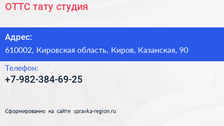 OTTC, тату-студия по адресу 610002, Кировская область, Киров, Казанская, 90 в дальнейшем Организация, размещена в следующих категориях:
