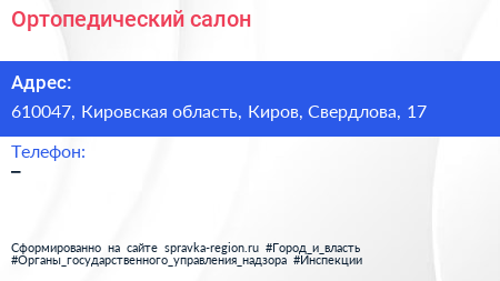 Ортопедический салон по адресу 610047, Кировская область, Киров, Свердлова, 17 в дальнейшем Организация, размещена в следующих категориях: