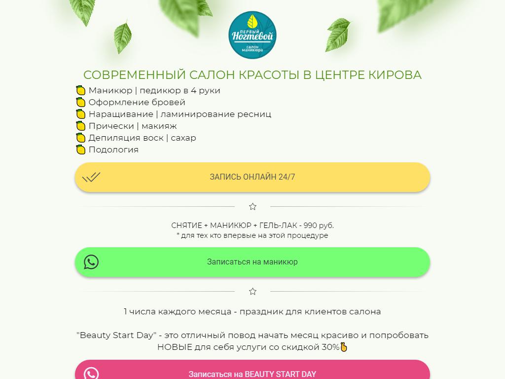 Первый ногтевой, салон красоты по адресу 610002, Кировская область, Киров, Пролетарская, 34 в дальнейшем Организация, размещена в следующих категориях: