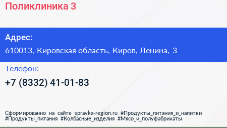 Поликлиника №3 по адресу 610013, Кировская область, Киров, Ленина, 3 в дальнейшем Организация, размещена в следующих категориях: