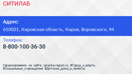 СИТИЛАБ по адресу 610021, Кировская область, Киров, Воровского, 94 в дальнейшем Организация, размещена в следующих категориях: