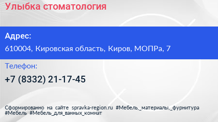 Улыбка, стоматология по адресу 610004, Кировская область, Киров, МОПРа, 7 в дальнейшем Организация, размещена в следующих категориях:
