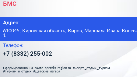 БМС по адресу 610045, Кировская область, Киров, Маршала Ивана Конева, 1 в дальнейшем Организация, размещена в следующих категориях: