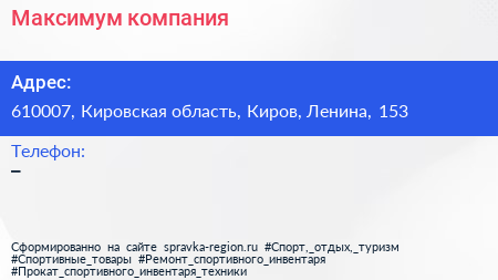 Максимум, компания по адресу 610007, Кировская область, Киров, Ленина, 153 в дальнейшем Организация, размещена в следующих категориях: