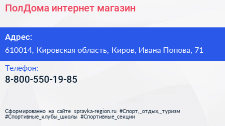 ПолДома, интернет-магазин по адресу 610014, Кировская область, Киров, Ивана Попова, 71 в дальнейшем Организация, размещена в следующих категориях: