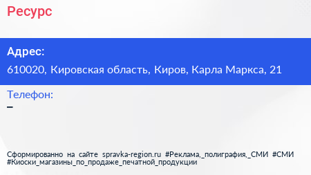 Ресурс по адресу 610020, Кировская область, Киров, Карла Маркса, 21 в дальнейшем Организация, размещена в следующих категориях:
