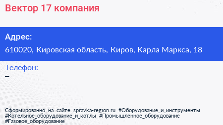 Вектор-17, компания по адресу 610020, Кировская область, Киров, Карла Маркса, 18 в дальнейшем Организация, размещена в следующих категориях: