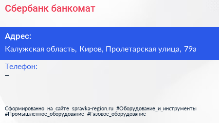 Сбербанк, банкомат по адресу Калужская область, Киров, Пролетарская улица, 79а в дальнейшем Организация, размещена в следующих категориях: