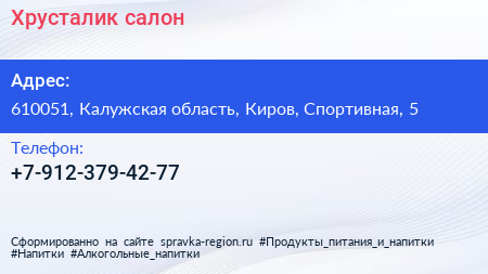Хрусталик, салон по адресу 610051, Калужская область, Киров, Спортивная, 5 в дальнейшем Организация, размещена в следующих категориях: