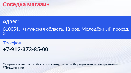 Соседка, магазин по адресу 610051, Калужская область, Киров, Молодёжный проезд, 3 в дальнейшем Организация, размещена в следующих категориях: