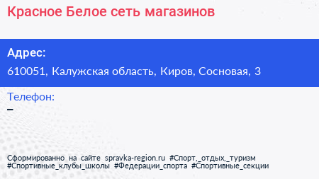 Красное & Белое, сеть магазинов по адресу 610051, Калужская область, Киров, Сосновая, 3 в дальнейшем Организация, размещена в следующих категориях: