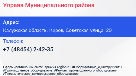 Управа Муниципального района по адресу Калужская область, Киров, Советская улица, 20 в дальнейшем Организация, размещена в следующих категориях: