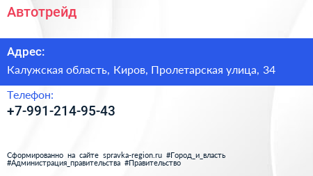 Автотрейд по адресу Калужская область, Киров, Пролетарская улица, 34 в дальнейшем Организация, размещена в следующих категориях: