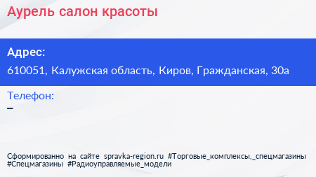 Аурель, салон красоты по адресу 610051, Калужская область, Киров, Гражданская, 30а в дальнейшем Организация, размещена в следующих категориях: