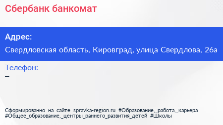 Сбербанк, банкомат по адресу Свердловская область, Кировград, улица Свердлова, 26а в дальнейшем Организация, размещена в следующих категориях: