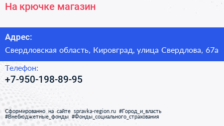На крючке, магазин по адресу Свердловская область, Кировград, улица Свердлова, 67а в дальнейшем Организация, размещена в следующих категориях: