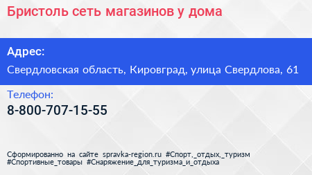 Бристоль, сеть магазинов у дома по адресу Свердловская область, Кировград, улица Свердлова, 61 в дальнейшем Организация, размещена в следующих категориях: