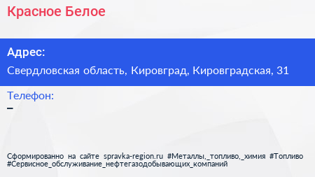 Красное & Белое по адресу Свердловская область, Кировград, Кировградская, 31 в дальнейшем Организация, размещена в следующих категориях: