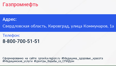 Газпромнефть по адресу Свердловская область, Кировград, улица Коммунаров, 1а в дальнейшем Организация, размещена в следующих категориях: