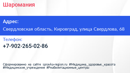Шаромания по адресу Свердловская область, Кировград, улица Свердлова, 68 в дальнейшем Организация, размещена в следующих категориях: