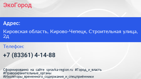 ЭкоГород по адресу Кировская область, Кирово-Чепецк, Строительная улица, 2д в дальнейшем Организация, размещена в следующих категориях: