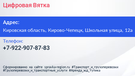 Цифровая Вятка по адресу Кировская область, Кирово-Чепецк, Школьная улица, 12а в дальнейшем Организация, размещена в следующих категориях: