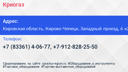 Криогаз по адресу Кировская область, Кирово-Чепецк, Западный проезд, 6 к2 в дальнейшем Организация, размещена в следующих категориях: