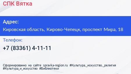 СПК-Вятка по адресу Кировская область, Кирово-Чепецк, проспект Мира, 18 в дальнейшем Организация, размещена в следующих категориях: