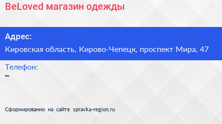 BeLoved, магазин одежды по адресу Кировская область, Кирово-Чепецк, проспект Мира, 47 в дальнейшем Организация, размещена в следующих категориях: