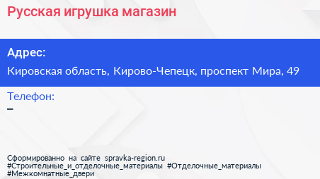 Русская игрушка, магазин по адресу Кировская область, Кирово-Чепецк, проспект Мира, 49 в дальнейшем Организация, размещена в следующих категориях: