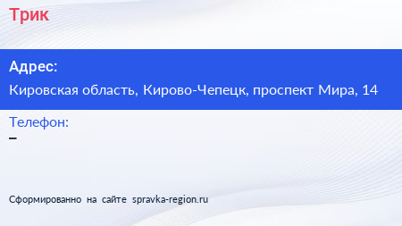 Трик по адресу Кировская область, Кирово-Чепецк, проспект Мира, 14 в дальнейшем Организация, размещена в следующих категориях: