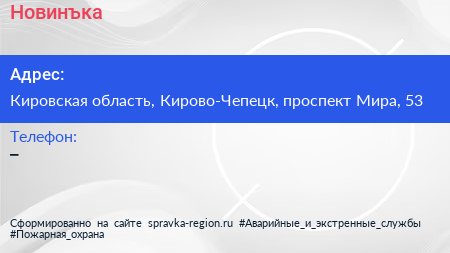 Новинъка по адресу Кировская область, Кирово-Чепецк, проспект Мира, 53 в дальнейшем Организация, размещена в следующих категориях: