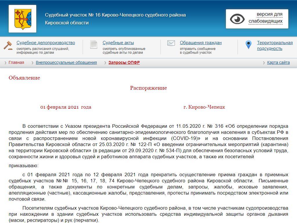 Судебный участок №16 по адресу Кировская область, Кирово-Чепецк, Речная улица, 4 к3 в дальнейшем Организация, размещена в следующих категориях: