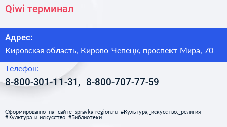 Qiwi, терминал по адресу Кировская область, Кирово-Чепецк, проспект Мира, 70 в дальнейшем Организация, размещена в следующих категориях: