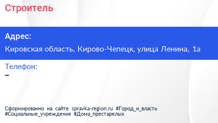 Строитель по адресу Кировская область, Кирово-Чепецк, улица Ленина, 1а в дальнейшем Организация, размещена в следующих категориях: