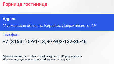 Горница, гостиница по адресу Мурманская область, Кировск, Дзержинского, 19 в дальнейшем Организация, размещена в следующих категориях: