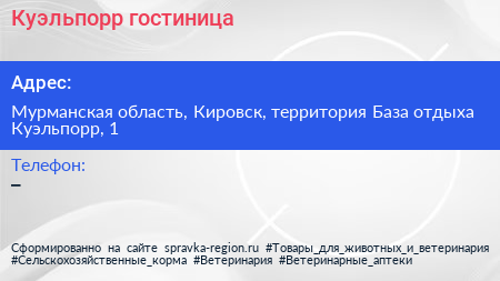 Куэльпорр, гостиница по адресу Мурманская область, Кировск, территория База отдыха Куэльпорр, 1 в дальнейшем Организация, размещена в следующих категориях: